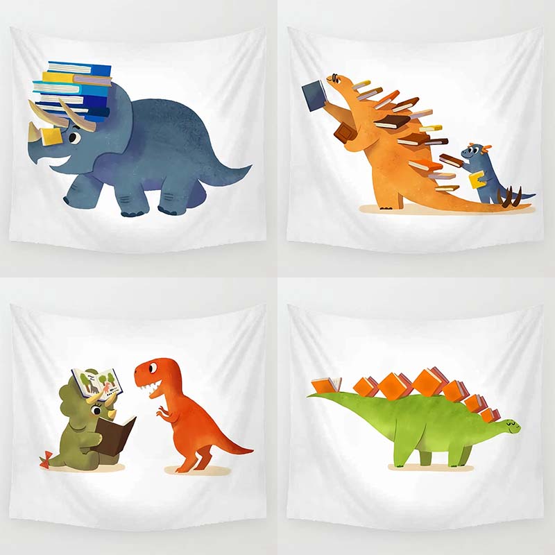 Украшение стены дома Гобелен Любит читать Маленький динозавр Художественный фон Гобелен для офиса Гостиная