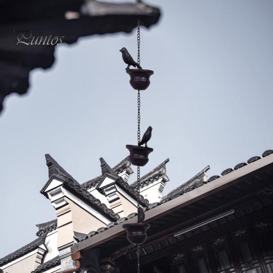 Мирная атмосфера: Подвесьте дождевую цепь на желоб, чтобы вода напрямую стекала в чашу, создавая спокойную атмосферу в садах, на террасах, во дворах, на виллах и т. д.