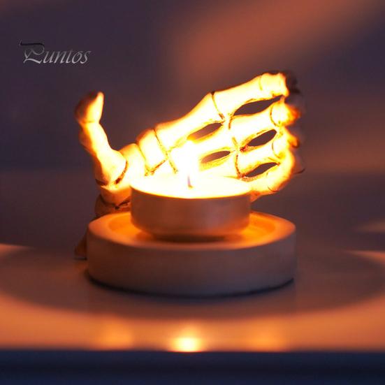 Атмосферное освещение: Зажгите свечу на ладони скелета или поставьте ее отдельно, чтобы создать жуткую, но притягательную атмосферу.. С наступлением ночи наблюдайте, как мерцающее пламя усиливает жуткое очарование этого уникального предмета декора.