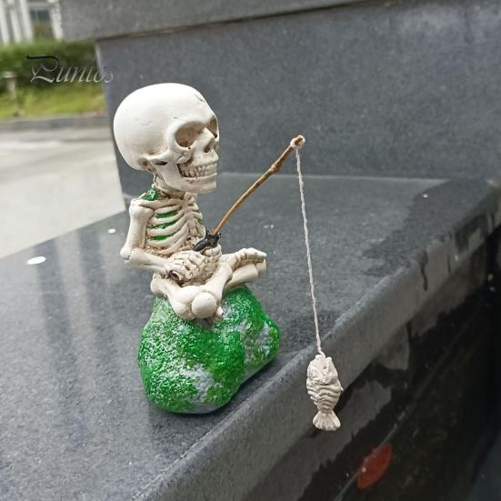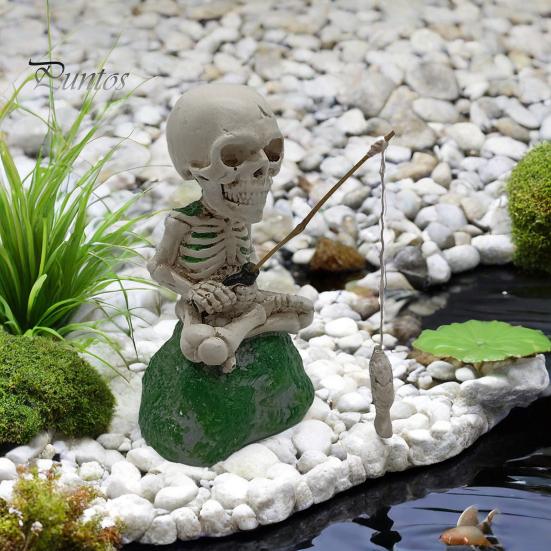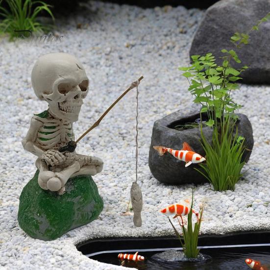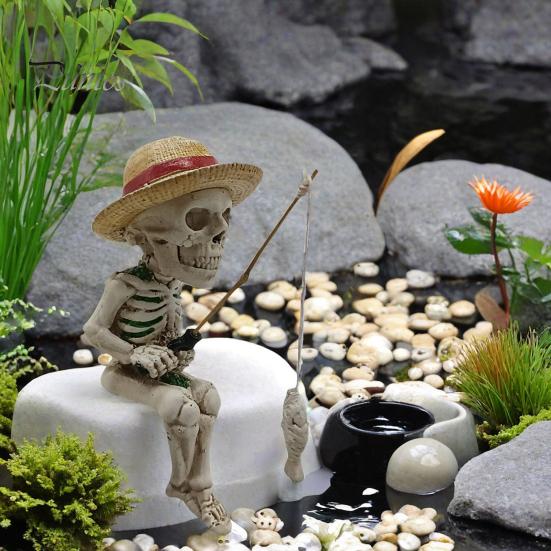 Причудливый готический акцент: Добавьте нотку таинственности и очарования в ваш интерьер с помощью садовых аксессуаров Fishing Skull.. Эта мини-статуэтка черепа, изображающая скелета, занимающегося рыбалкой, привнесет жуткую, но в то же время очаровательную атмосферу в атмосферу вашего сада.