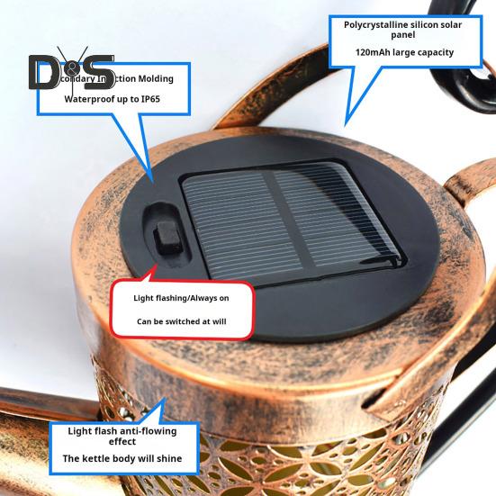 Украсьте свой сад очаровательной лампой-чайником с солнечными цветами и волшебными цветами.. Простая установка включает в себя пропускание световой струны через отверстие лейки, сборку ручки и заземляющего колышка, а затем вставку его в почву газона.. Встроенная солнечная перезаряжаемая литиевая батарея исключает необходимость замены батарей.. Этот садовый художественный светильник автоматически загорается в темноте и выключается в течение дня, обеспечивая 8-10 часов освещения после 6-8 часов зарядки под прямым солнечным светом..