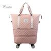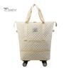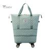 Обратите внимание, что во время транспортировки могут образоваться складки, но при регулярном использовании они исчезнут естественным образом.. Установка и снятие роликовых колес очень просты — просто надежно зажмите кнопку-защелку.. Путешествуйте стильно и удобно с нашей универсальной и прочной багажной сумкой.