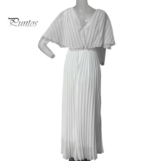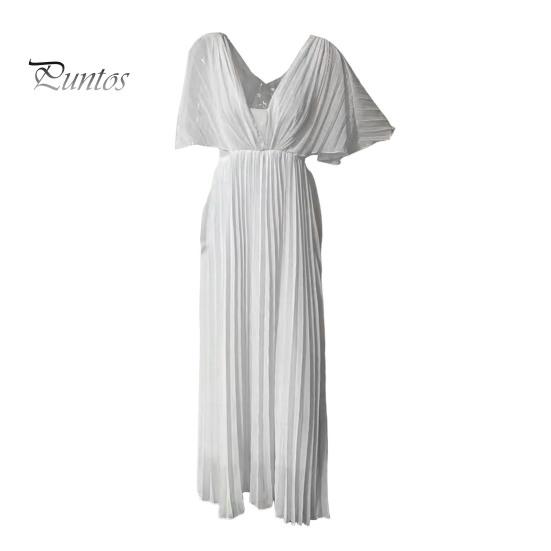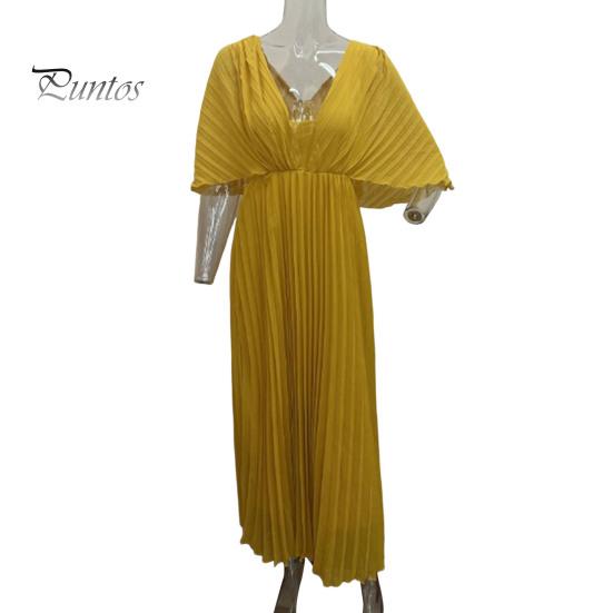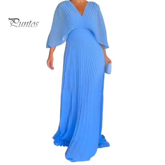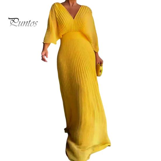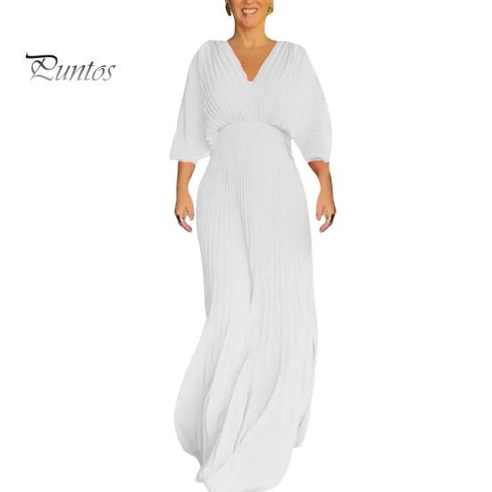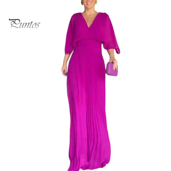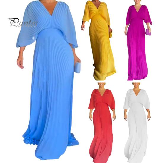 дизайн: Это длинное платье со стильным V-образным вырезом и замысловатыми складками отличается свободным кроем, который подчеркивает вашу фигуру, создавая шикарный и модный образ.. Сплошной цвет добавит элегантности вашему ансамблю.