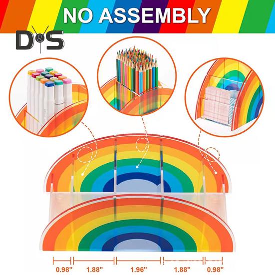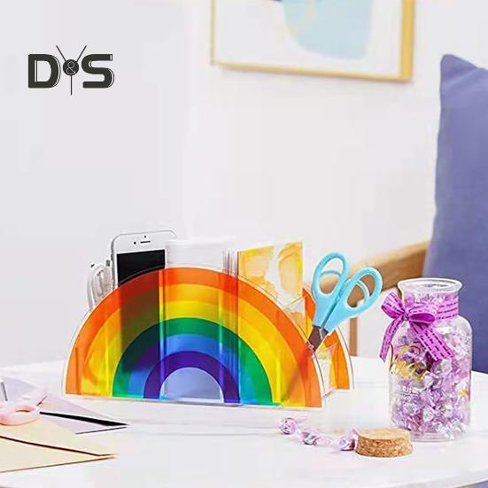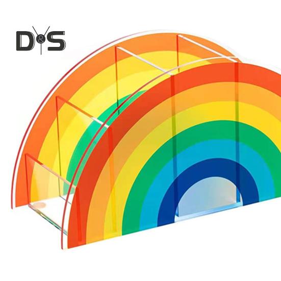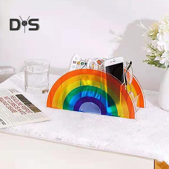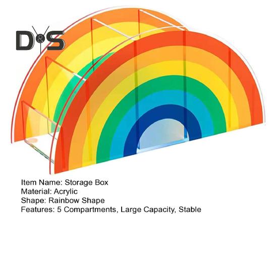 Организуйте свой стол стильно с помощью этой универсальной подставки для хранения акриловых кистей для макияжа.. Этот ящик для хранения имеет пять отделений и идеально подходит для хранения косметических принадлежностей, канцелярских принадлежностей, сережек, колец и многого другого.. Изготовленный из высококачественного акрилового материала, этот настольный органайзер напоминает радужный арочный мост, добавляя нотку красоты вашему рабочему пространству..
