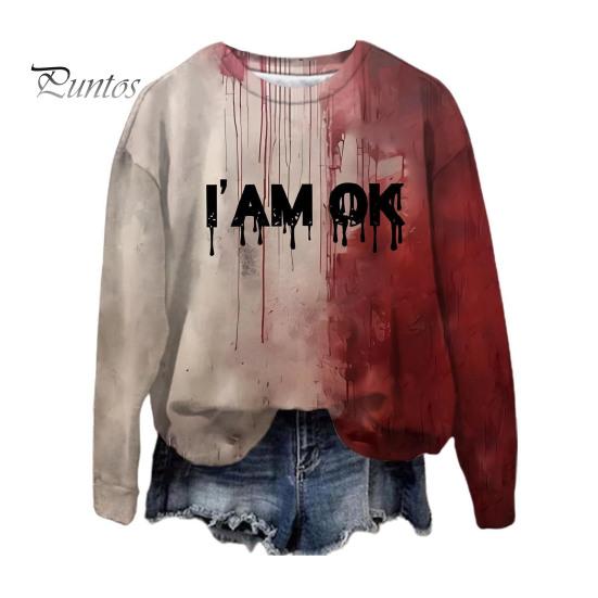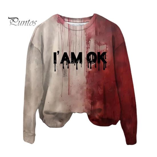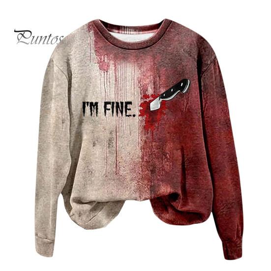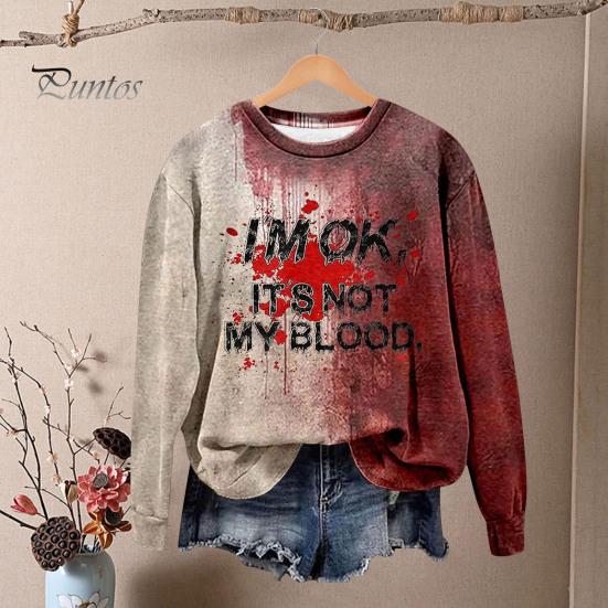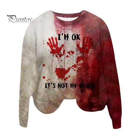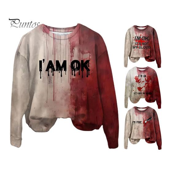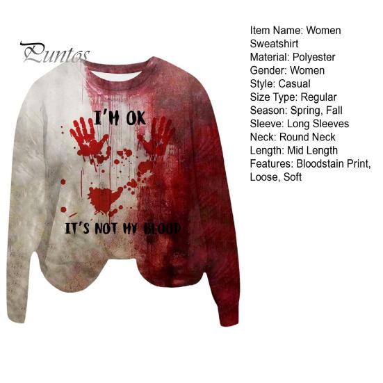 Эта женская толстовка изготовлена из 100% полиэфирного волокна, что обеспечивает мягкость, комфорт и воздухопроницаемость.. Модель с длинными рукавами украшена ретро-принтом с кровавыми пятнами, который идеально подойдет для придания жуткого оттенка вашему образу на Хэллоуин.. Эта толстовка, воплощающая винтажную тематику Хэллоуина с помощью 3D-цифровой печати, отличается простотой и модным стилем.. Универсальный по своей природе, он легко сочетается со спортивными брюками, джинсами, широкими брюками, шортами, а также различной обувью и аксессуарами, такими как туфли, сумки, шляпы и ожерелья..