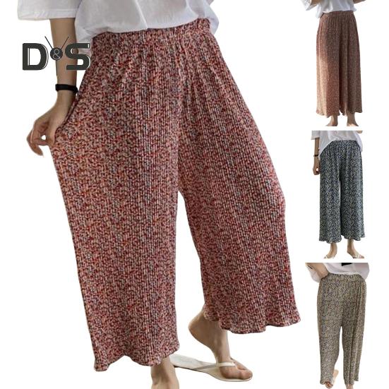 Характеристики: Цветочный принт, широкая штанина, эластичная талия
