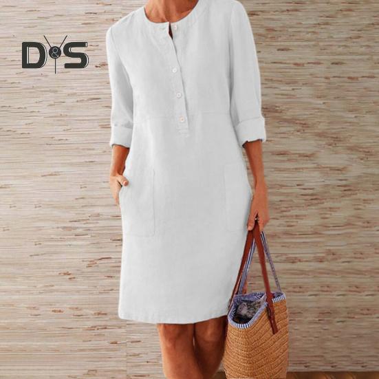 Материал: Это платье изготовлено из смеси хлопка и льна и обеспечивает повседневный свободный крой, идеально подходящий для комфорта на весь день.. Мягкая и легкая ткань обеспечивает воздухопроницаемость, что делает ее идеальным выбором для различных случаев.