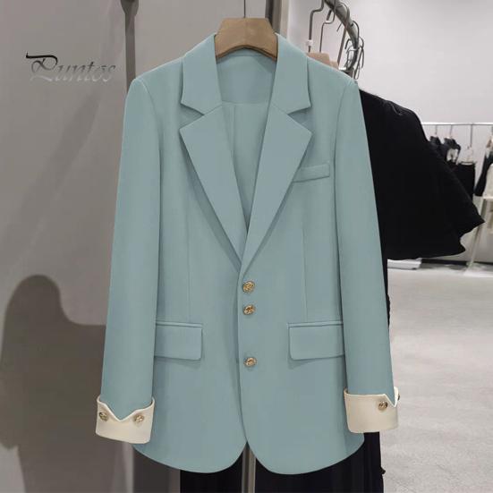 Стиль: Ощутите изысканность в нашем базовом женском пиджаке с неподвластным времени дизайном воротника с лацканами, который излучает классическую и универсальную привлекательность и подходит для различных случаев.