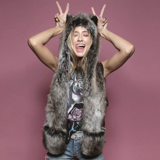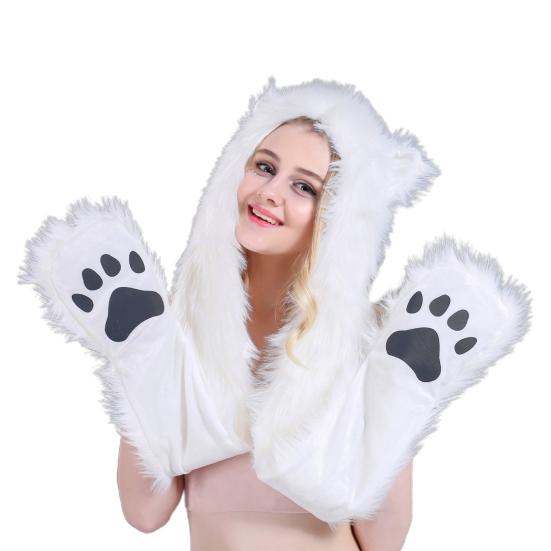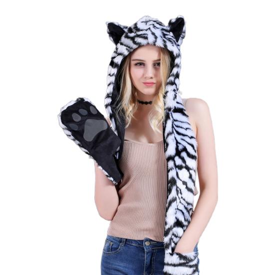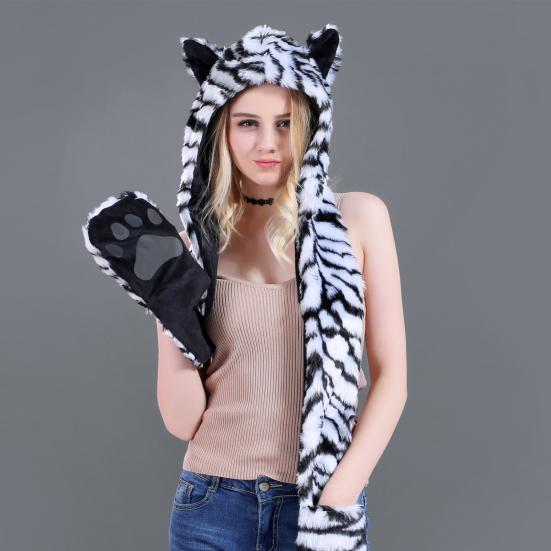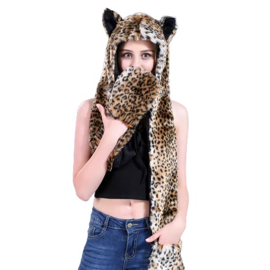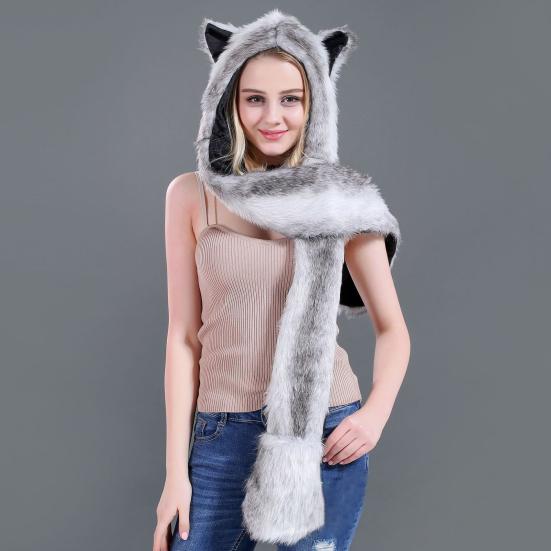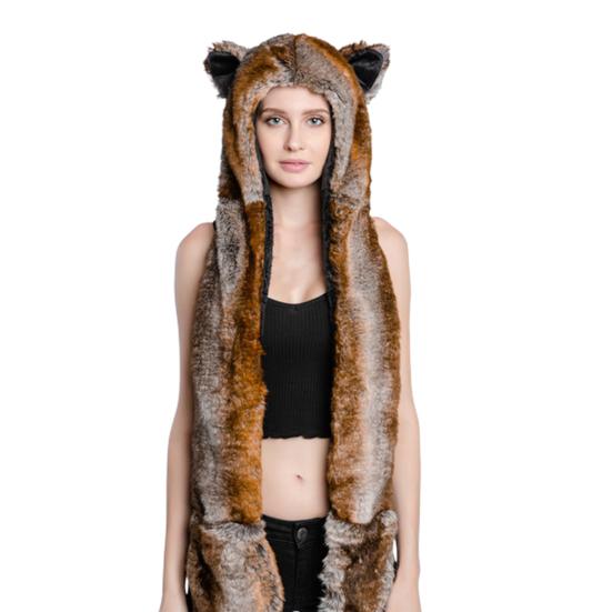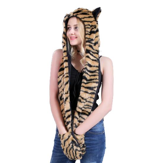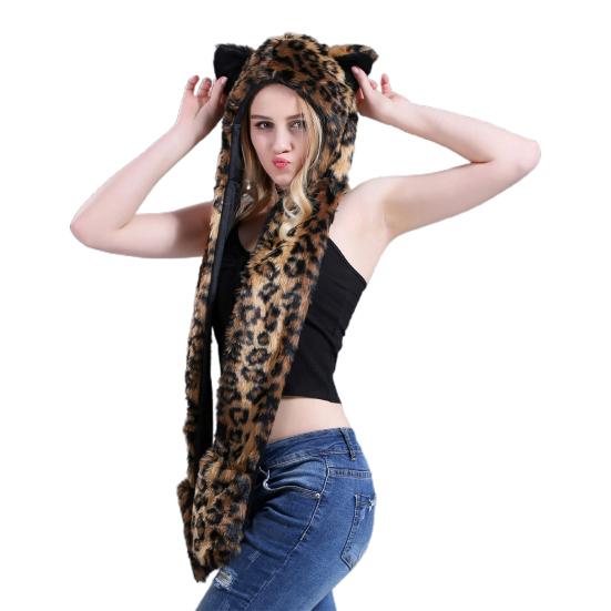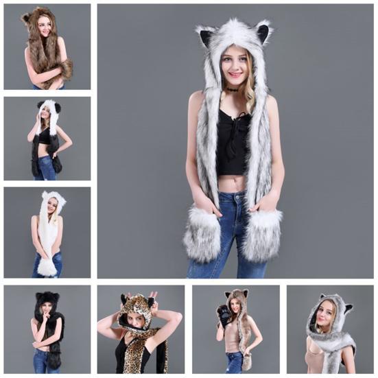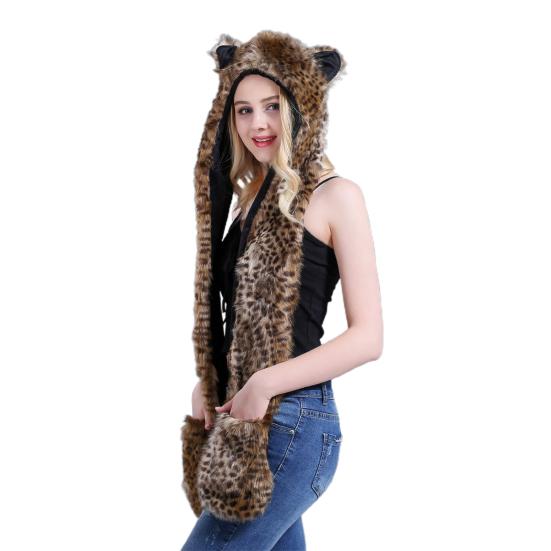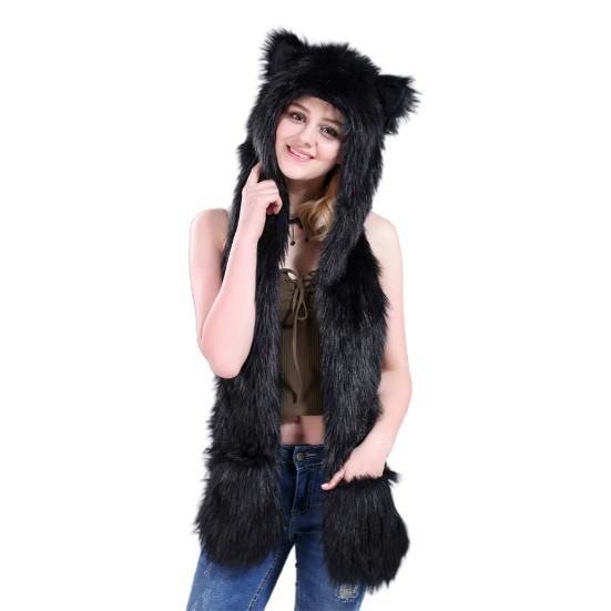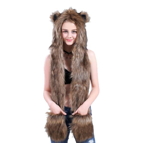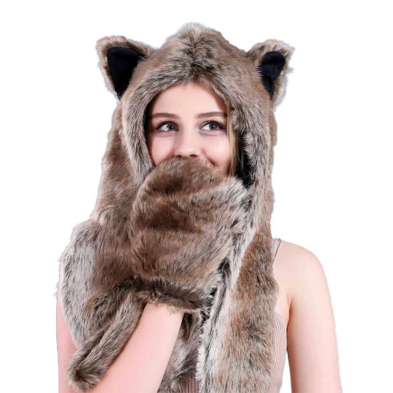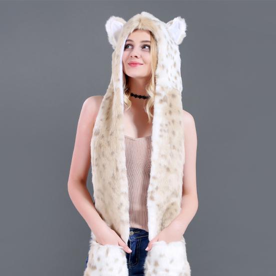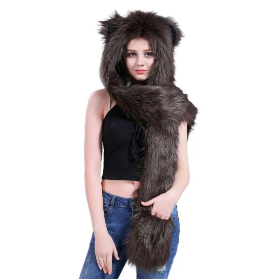 Меховой шарф с капюшоном, пушистый, Animal Factor, полные карманы, удобный, плоский шарф с ушками