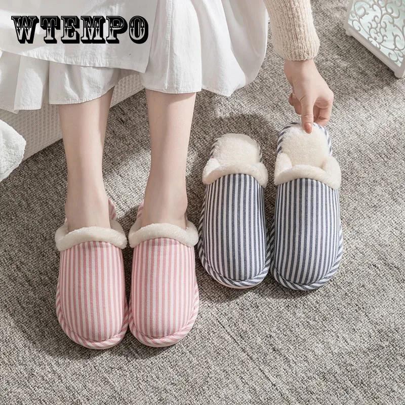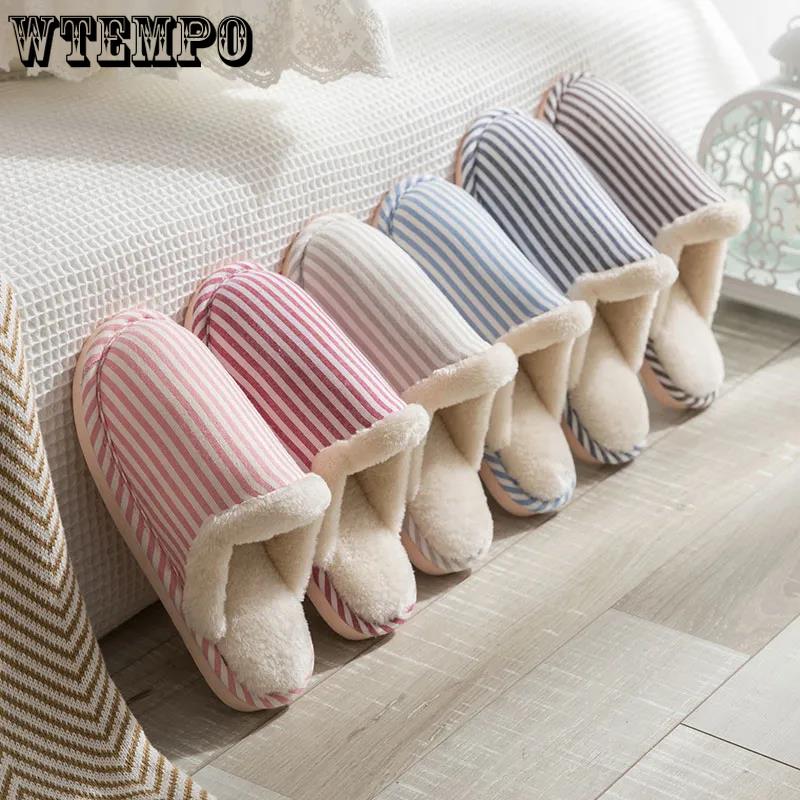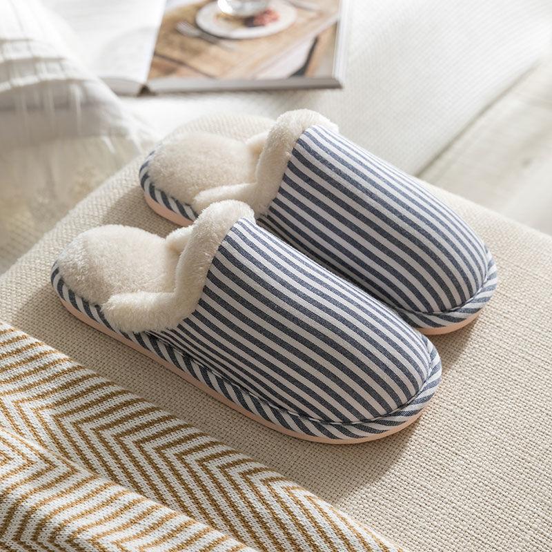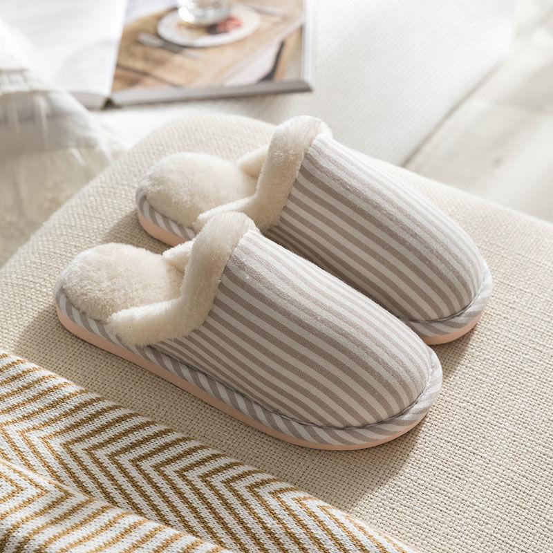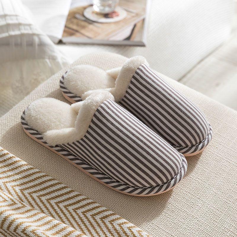 Осенние и зимние тапочки из чистого хлопка с полосатым дизайном для дома, нескользящая обувь с мягкой подошвой, теплые простые плюшевые хлопковые туфли