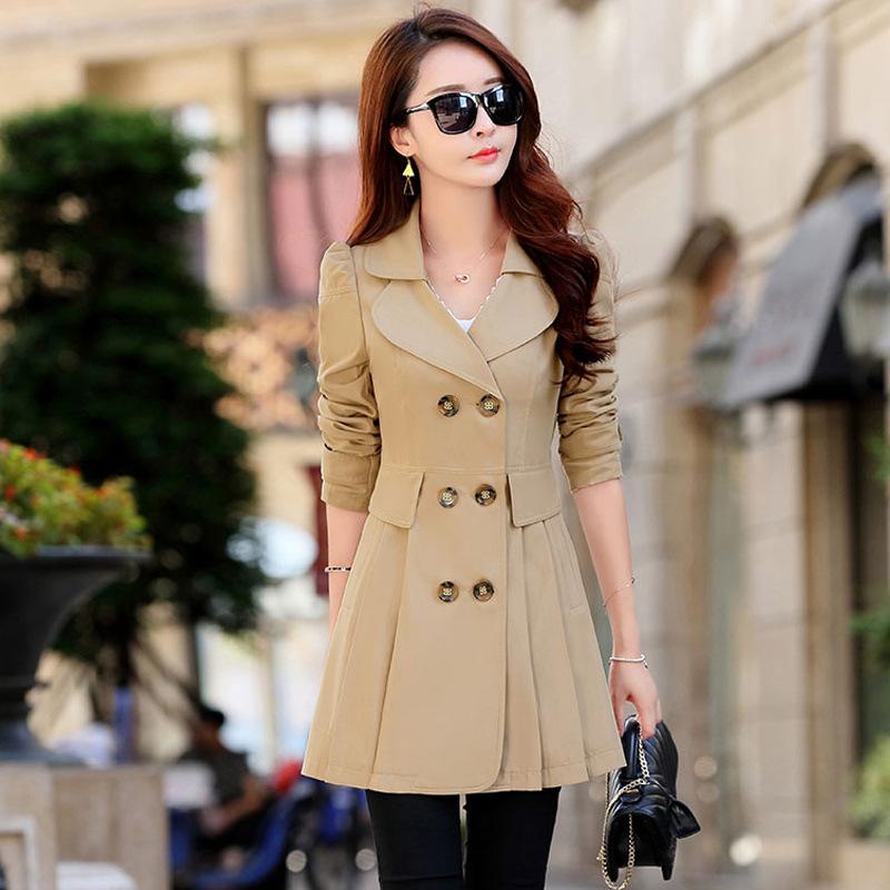 Весенне-осенняя корейская версия двубортного женского тренча средней длины с тонкой талией, пальто больших размеров — купить товар онлайн с бесплатной доставкой по всему миру!
