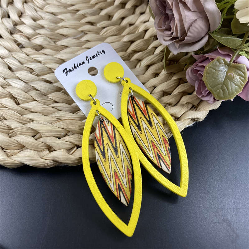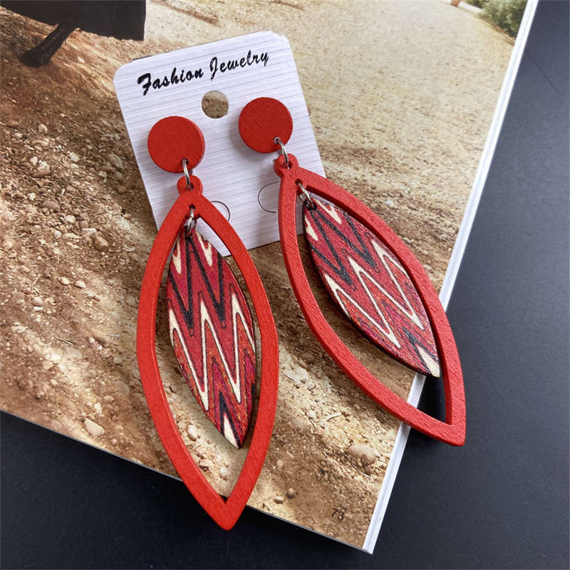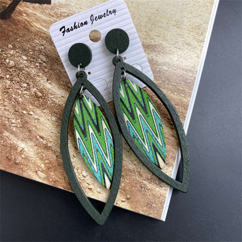Листья Деревянные украшения Богемные серьги-подвески Винтажные серьги Серьги Геометрические