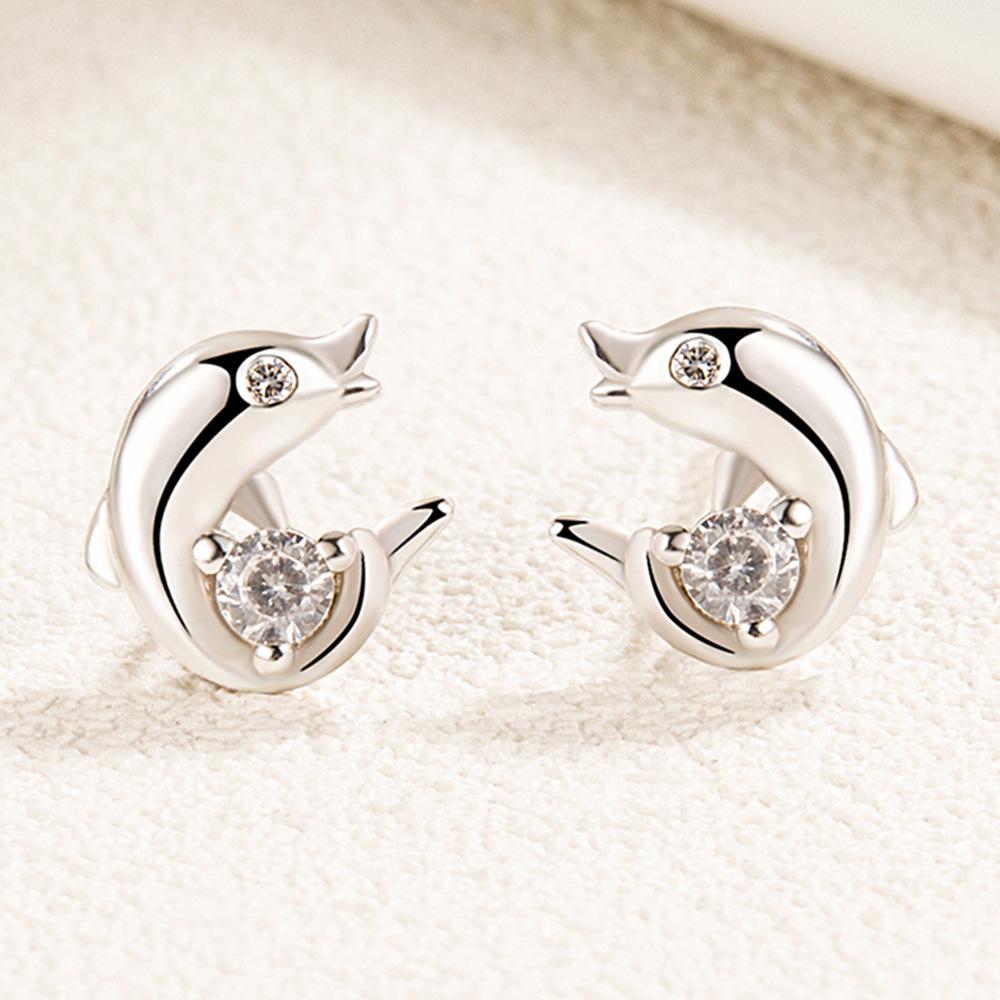Серебряные игольчатые белые серьги-гвоздики в виде дельфина в корейском стиле Ins, простые модные инкрустированные серьги-гвоздики, особый стиль для женщин