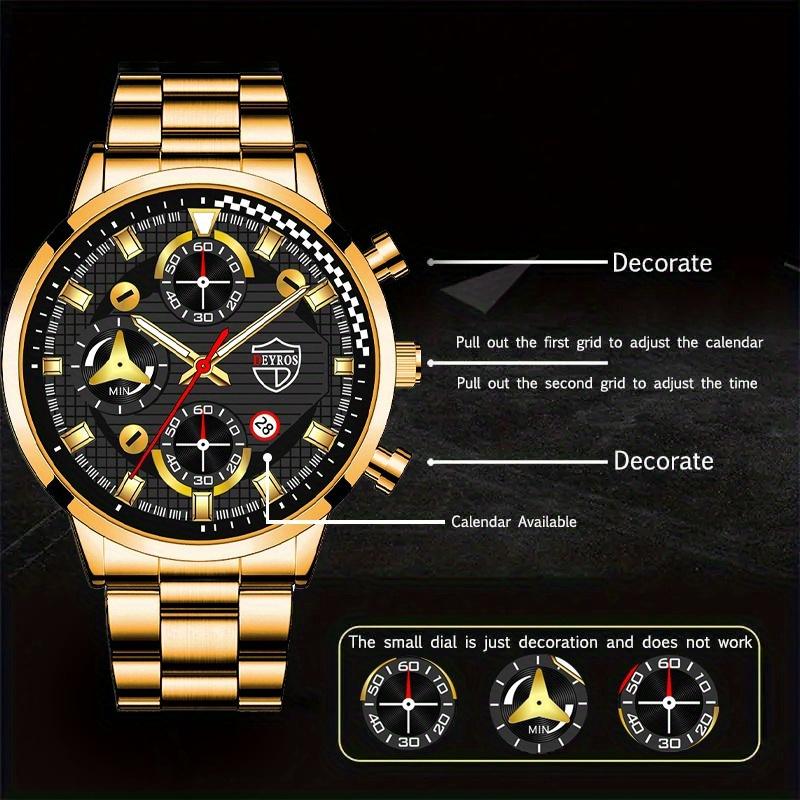 3 шт./набор 1 шт. Мужские роскошные кварцевые часы с календарем, модные деловые мужские наручные часы из нержавеющей стали и комплект из браслета и ожерелья