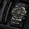 2 шт./комплект, мужские модные повседневные кварцевые часы и браслет из нержавеющей стали, лучшие подарки для него