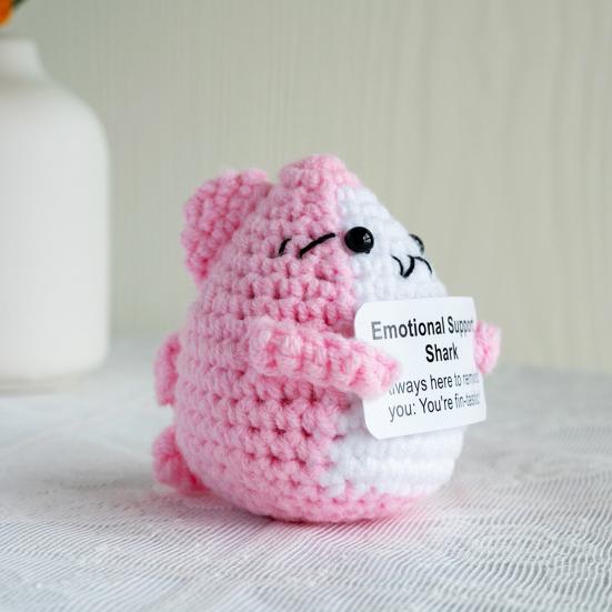 Компаньон по эмоциональной поддержке: Вязаная крючком акула дарит утешение и поддержку с помощью душевной открытки, становясь прекрасным спутником в трудные времена.