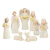 Разнообразные декоративные стили: В этот набор входят различные фигурки, изображающие сцену Рождества Иисуса в яслях, каждая разного размера.. Эти статуэтки предлагают универсальные декоративные возможности, добавляя неповторимый шарм сервировке стола или любой выставочной зоне.