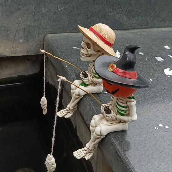 Причудливый готический акцент: Добавьте нотку таинственности и очарования в ваш интерьер с помощью садовых аксессуаров Fishing Skull.. Эта мини-статуэтка черепа, изображающая скелета, занимающегося рыбалкой, привнесет жуткую, но в то же время очаровательную атмосферу в атмосферу вашего сада.