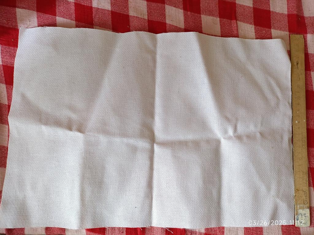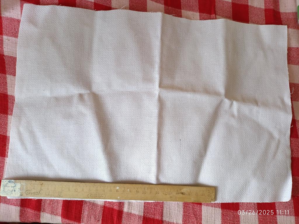 Всем доброго дня!Хочу поделиться своим отзывом на сей товар. Доставка пришла быстро,упаковано всё хорошо. Ткань на "4"/"5"(пахнет уксусом). На ощупь чувствуется как-будто акрил,но его немного и это не критично. По замерам всё пришло как надо. "Спасибо" продавцу!Буду пробовать вышивать!💗