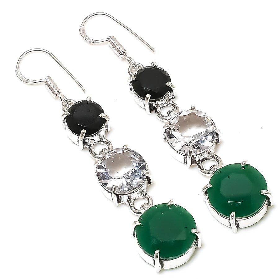 Изумруд натуральный белый топаз драгоценный камень подарочные серьги ручной работы 2.29" O5f63