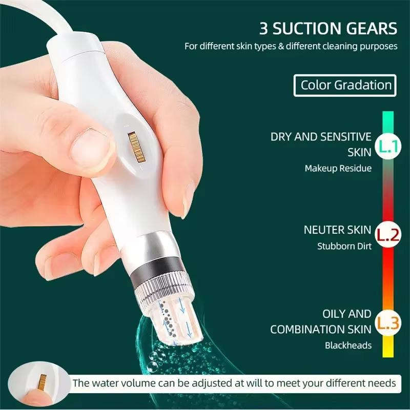 3.Регулируемые всасывающие механизмы и объем воды. Имеет 3 всасывающих отверстия для обработки разных типов кожи и различных целей очистки, а также свободно регулируемый объем воды, который позволяет настраивать эффекты очистки и увлажнения.