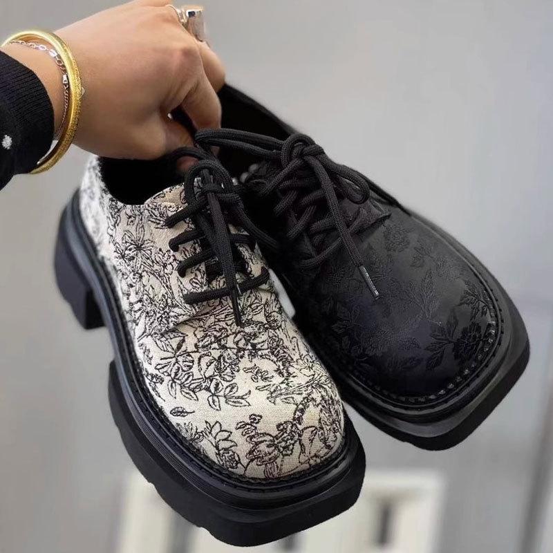 Новые женские туфли в китайском стиле, мокасины, новогодние туфли на толстом каблуке и платформе, увеличивающие рост, кожаные туфли-лодочки — купить товар онлайн с бесплатной доставкой по всему миру!