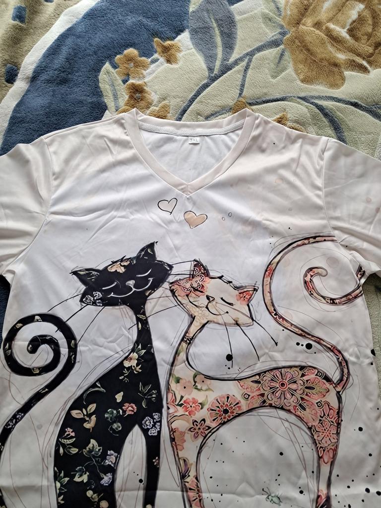 Женская футболка с мультяшным принтом кота, свободные летние футболки для отдыха с короткими рукавами и v-образным вырезом, кавайные футболки с котом, забавная женственная одежда — купить товар онлайн с бесплатной доставкой до всему миру!