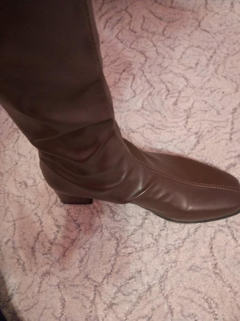 Сапоги отличного качества, пришли неожиданно очень быстро(5дней во Владимирскую область), удобные, мягкие. Подойдут на полные ноги, вверху шнурок для фиксации объема.Спасибо за подарок:меховые стельки. Продавца рекомендую.