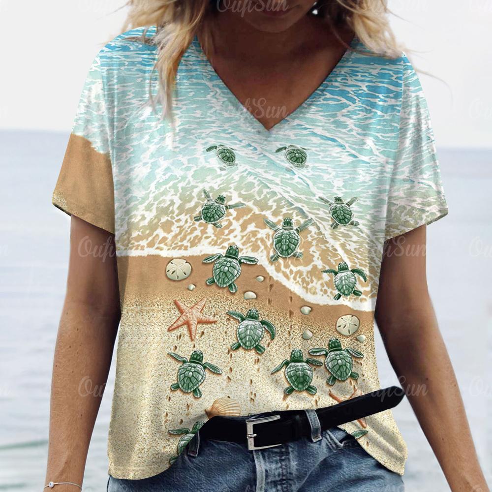 Топ женская футболка с принтом морских животных для женщин футболки большого размера женская трендовая одежда летняя дешевая пляжная футболка