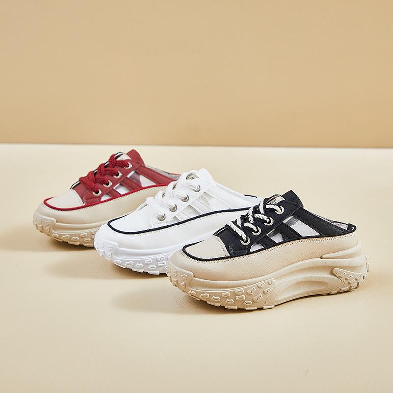 New Half-Support White Shoes Women's Raise the Bottom All-Matching Slippers Lightweight Hollow Ins Fashion Shoes Casual Shoes