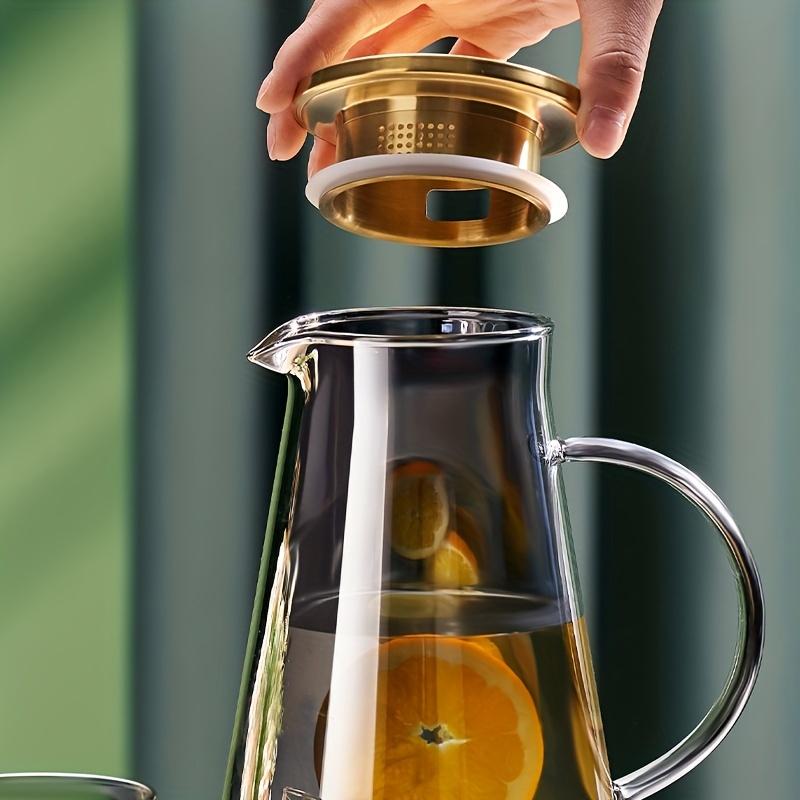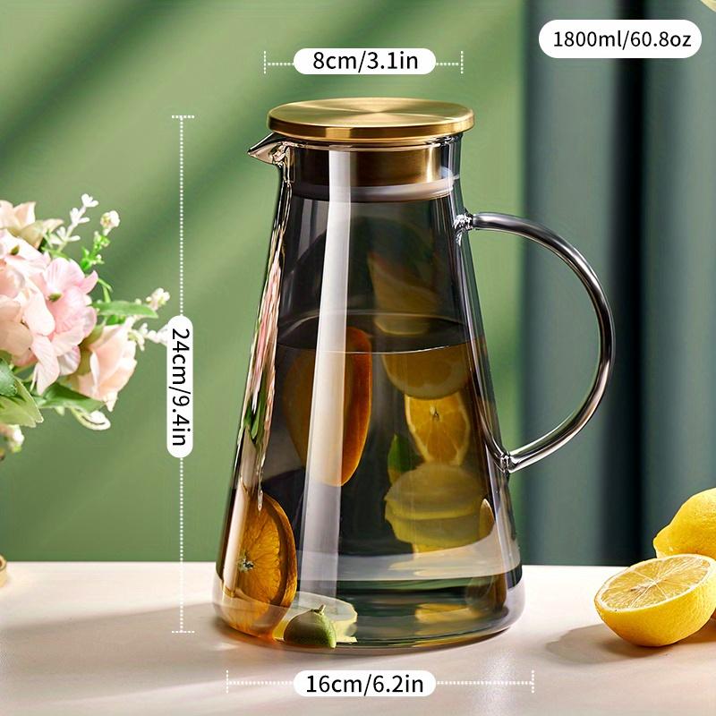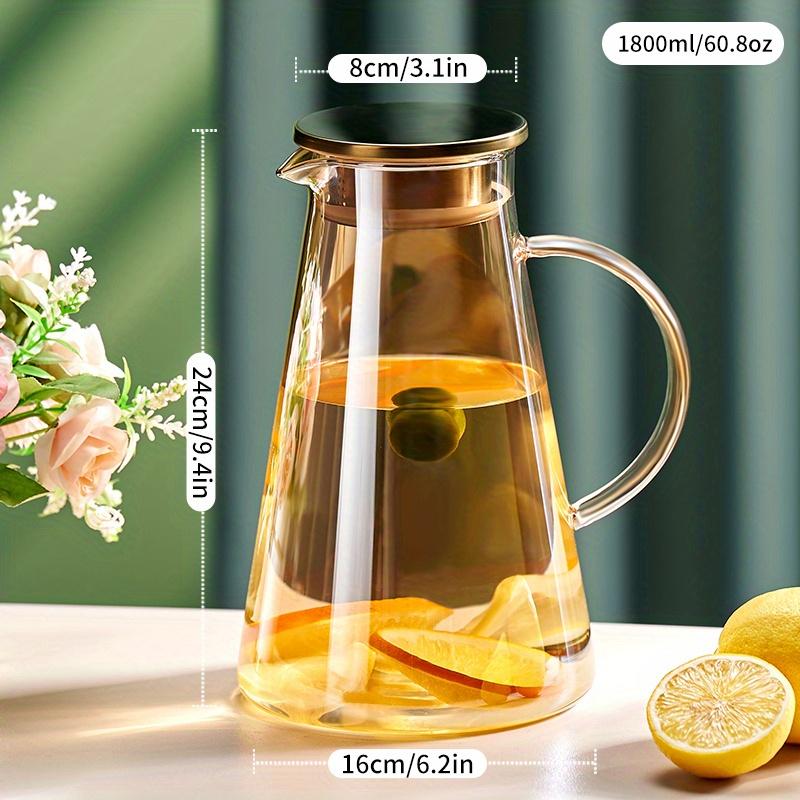 1 шт., 1800 мл/60,8 унций, прозрачная стеклянная бутылка для холодной воды, чайник большой емкости с ручкой и фильтром, нагреваемый электрической керамической плитой, подходит F