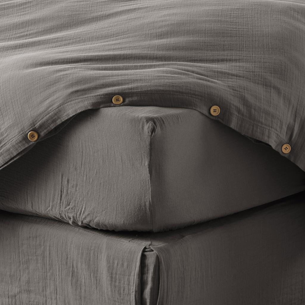 Drap housse 140x190 cm en Gaze de coton Granit