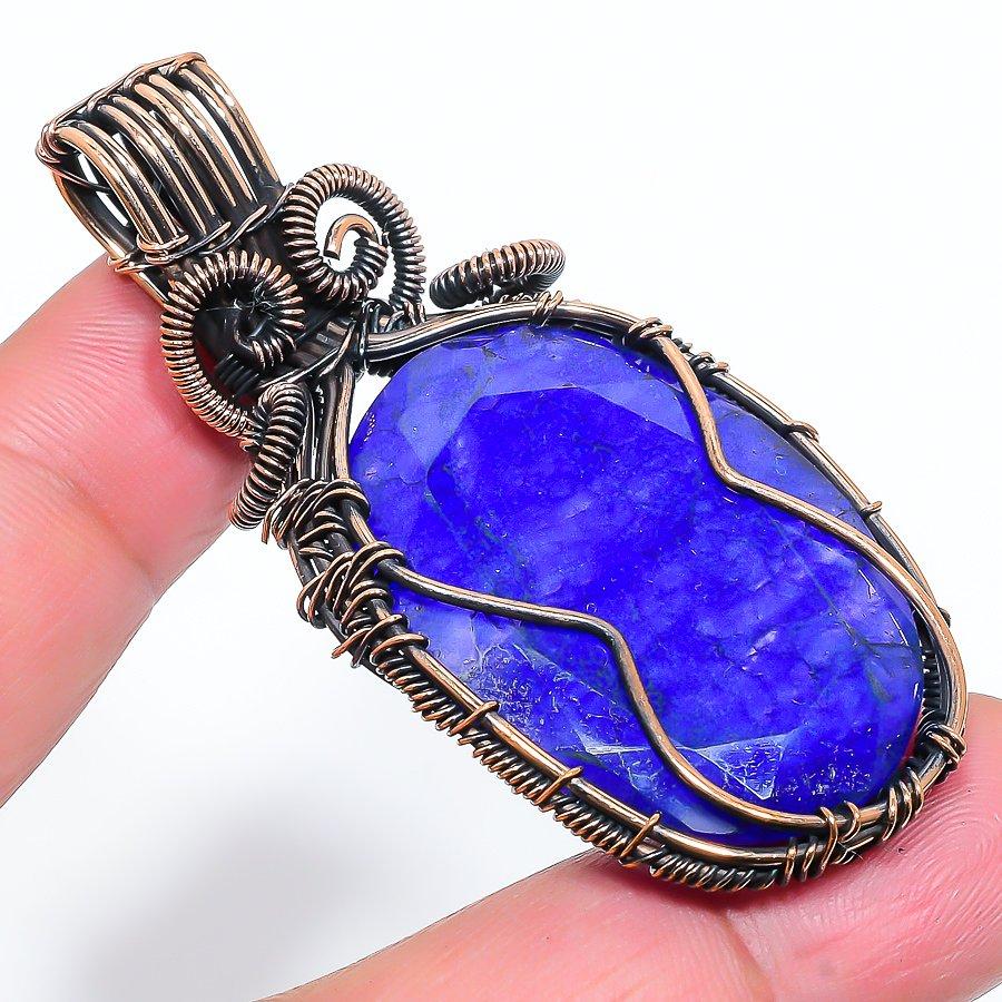 Подвеска из медной проволоки ручной работы с натуральным драгоценным камнем сапфиром 2,44 дюйма a6J46
