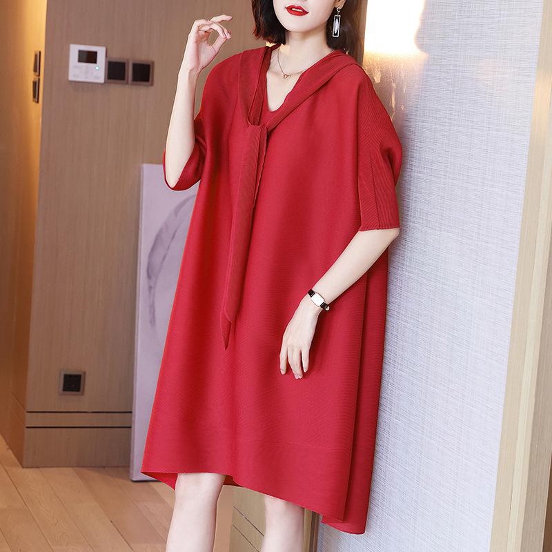 Модное плиссированное платье в стиле темперамент для женщин, осенние платья больших размеров, свободные платья А-силуэта