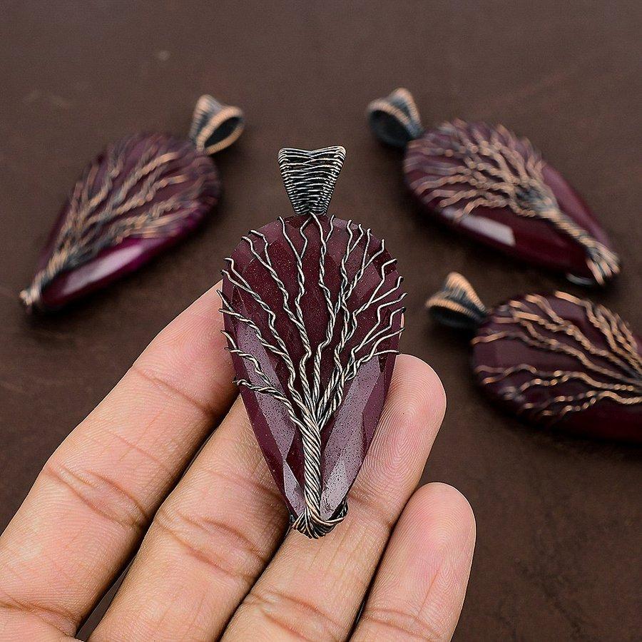 Рубин Натуральный Драгоценный Камень Ручная Работа Медная Проволока Обмотка Ювелирный Кулон 2,80" s3Q11