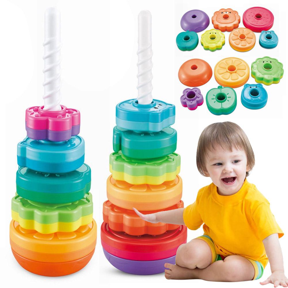 Вращающиеся игрушки, складывающиеся в стопку, радужная вращающаяся башня, развивающие обучающие сенсорные игрушки, фрукты, животные для детей от 12 месяцев и старше
