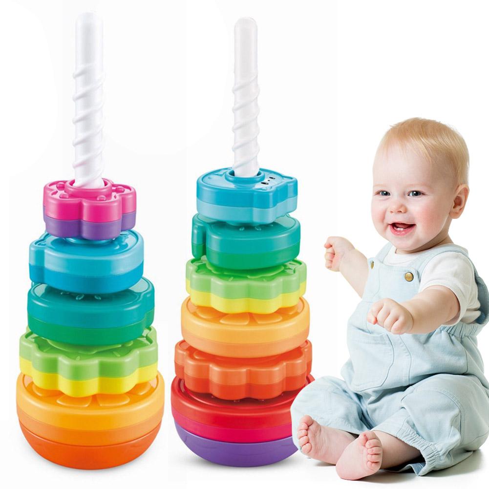 Вращающиеся игрушки, складывающиеся в стопку, радужная вращающаяся башня, развивающие обучающие сенсорные игрушки, фрукты, животные для детей от 12 месяцев и старше