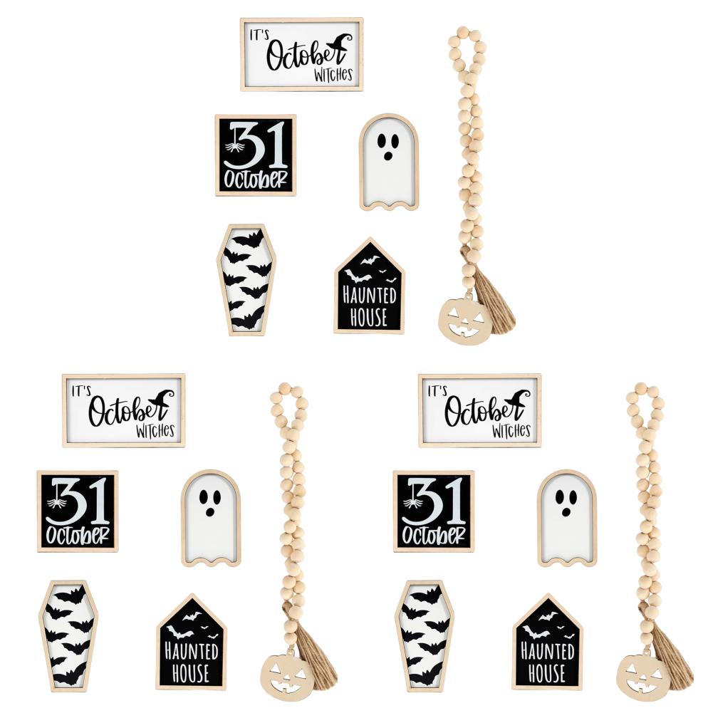 6 шт. Хэллоуин многоярусный поднос декоративный набор милый летучая мышь деревянный знак привидение дом с привидениями