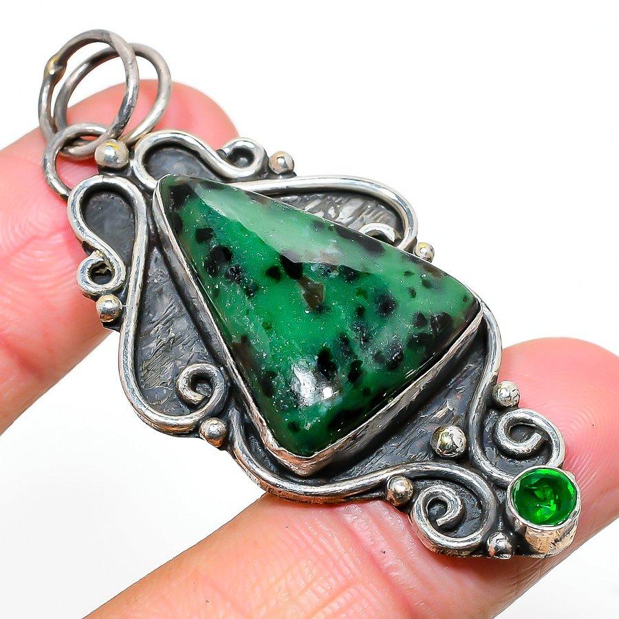 Подвеска из серебра 925 пробы с рубиновым цоситом и диопсидом, созданная в лаборатории, 2,56 дюйма, m1p58
