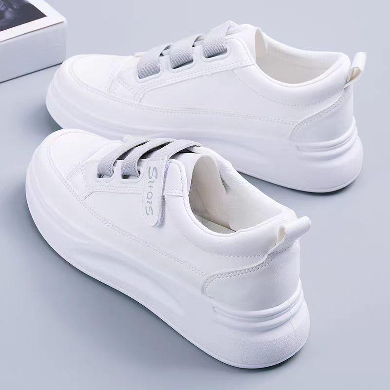 Белые туфли на липучках для женщин. Весенние новые универсальные белые туфли на платформе. Плоские увеличивающие рост повседневные туфли для сноуборда.