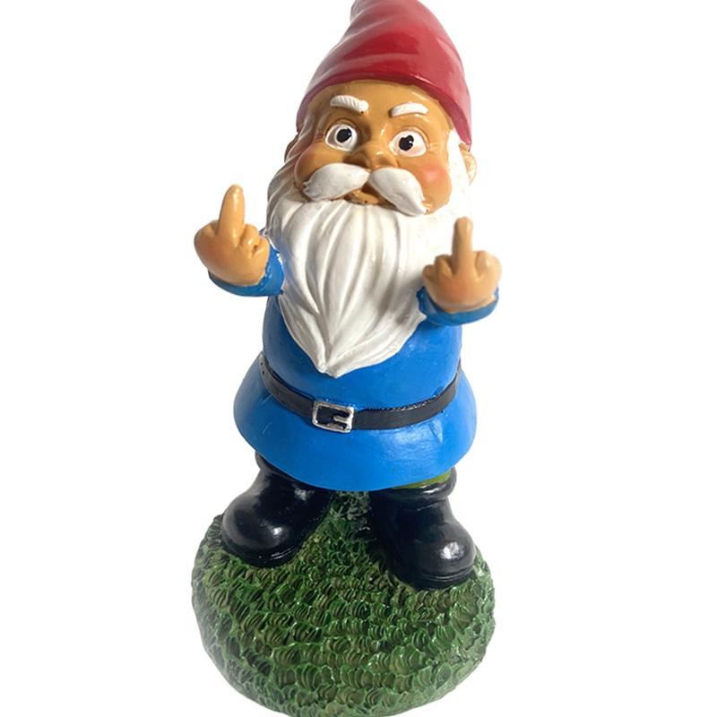 Микро-статуэтка гнома со средним пальцем Прямой средний палец Провокационный гном Ландшафтный декор для сада Садовые фигурки из смолы