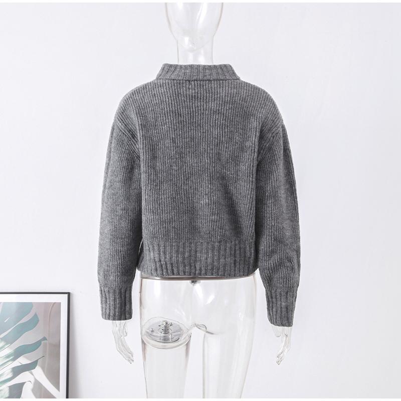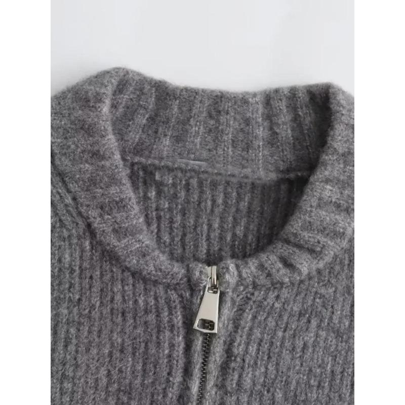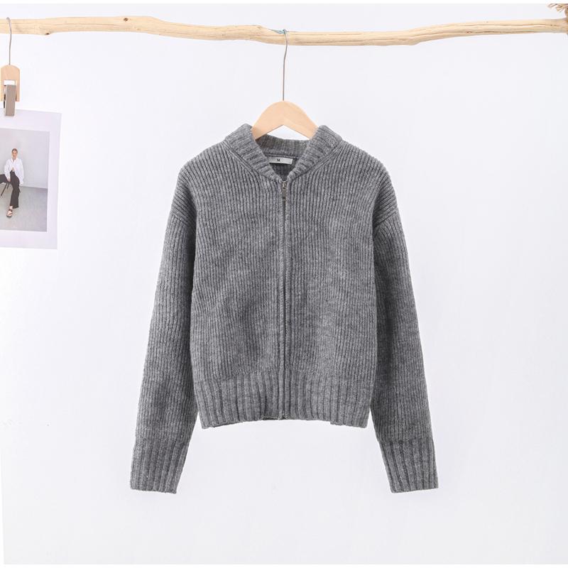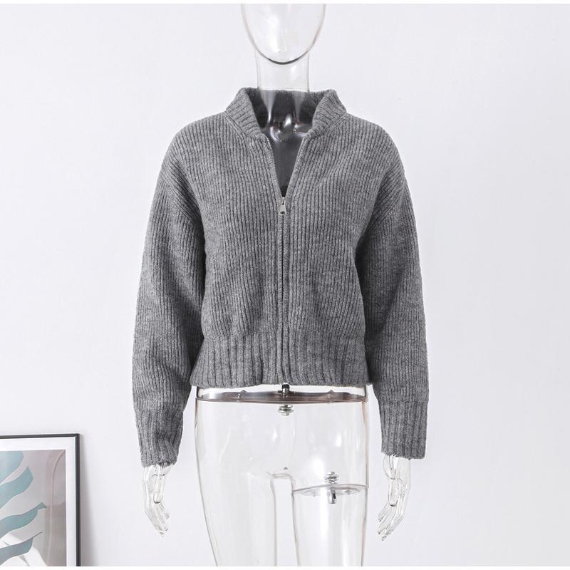 Серый кардиган на молнии с круглым воротом, короткий свитер, утолщенный, повседневный, с длинным рукавом, женский топ, свободный трикотаж, осень-зима