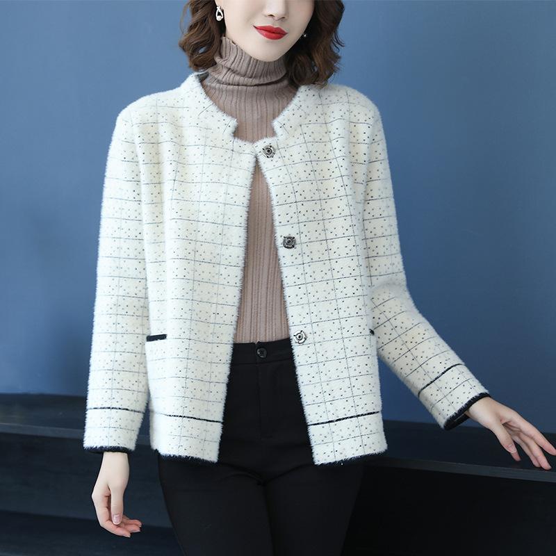 Осенне-зимняя клетчатая куртка из искусственной норки, женский короткий кардиган с длинными рукавами, весенне-осеннее модное пальто — купить товар онлайн с бесплатной доставкой по всему миру!