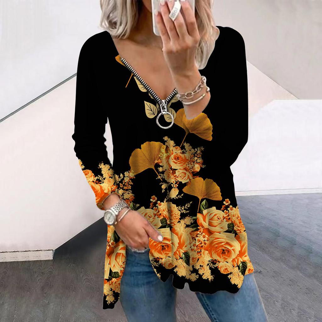 Женские осенние цветочные веерные розы с длинным рукавом футболки свободные V-образным вырезом больших размеров футболки топы удобные блузки — купить товар онлайн с бесплатной доставкой по всему миру!
