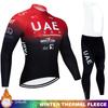 Мужской зимний комплект для велоспорта Team UAE с термофлисом - джерси с длинным рукавом и брюки-бибсы с подкладкой