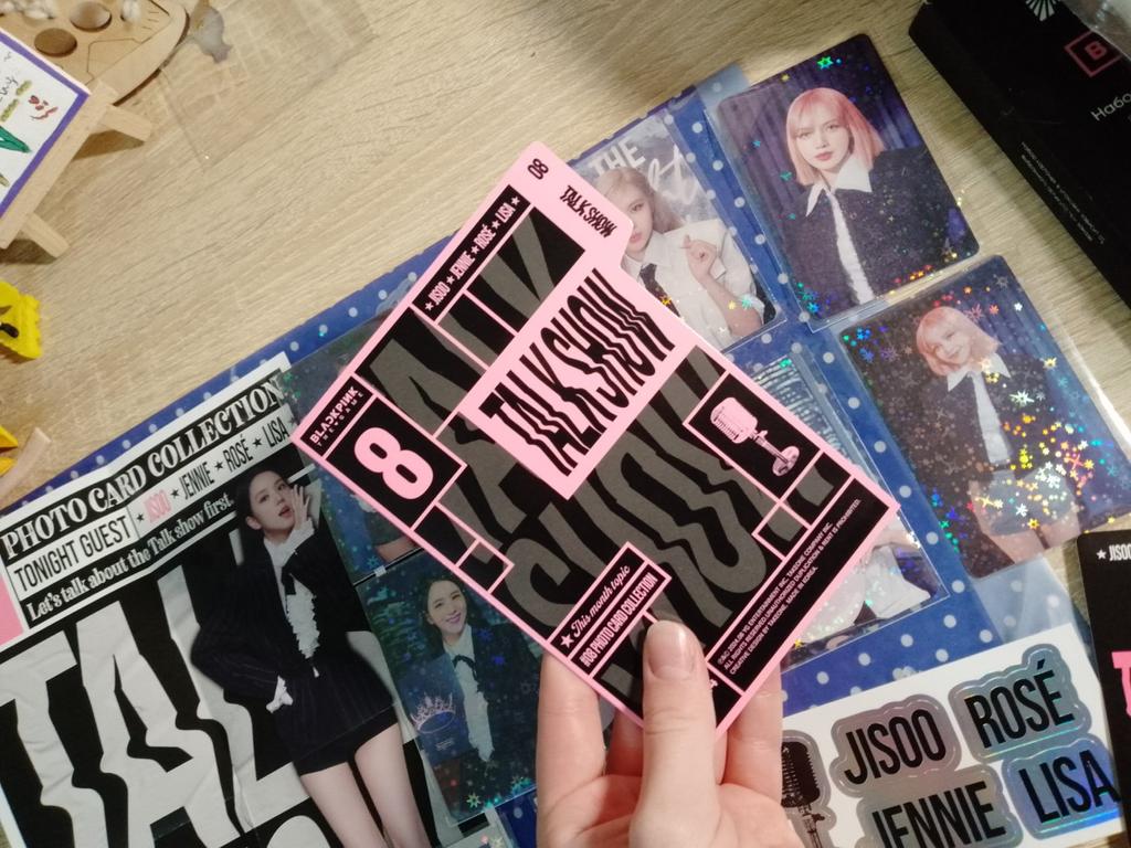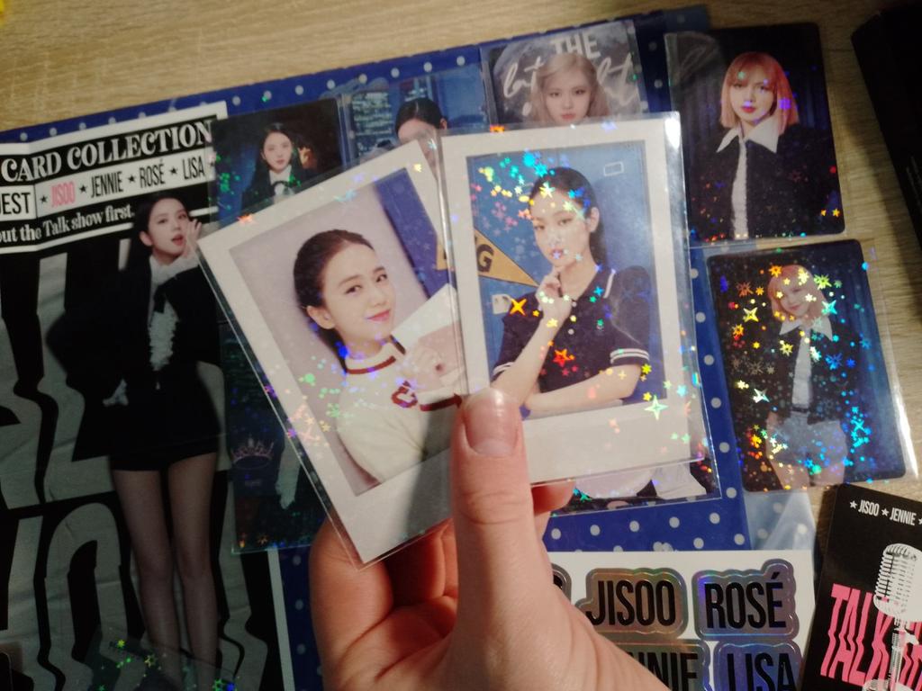 ОАОАОАОАОАО Я ОЧЕНЬ РАДА, хоть состав и маленький, но очень красивый. Положили 2 офф поларойда в подарок, я хотела очень постер с Джису и мне он выпал Я В ШОКЕ, (она моя биаска)также очень хотела карты участниц с винилом и мне выпали Розе и Дженни,вообще все карты красивые очень рада.Наклейки голографические и очень красивые. Я рекомендую!