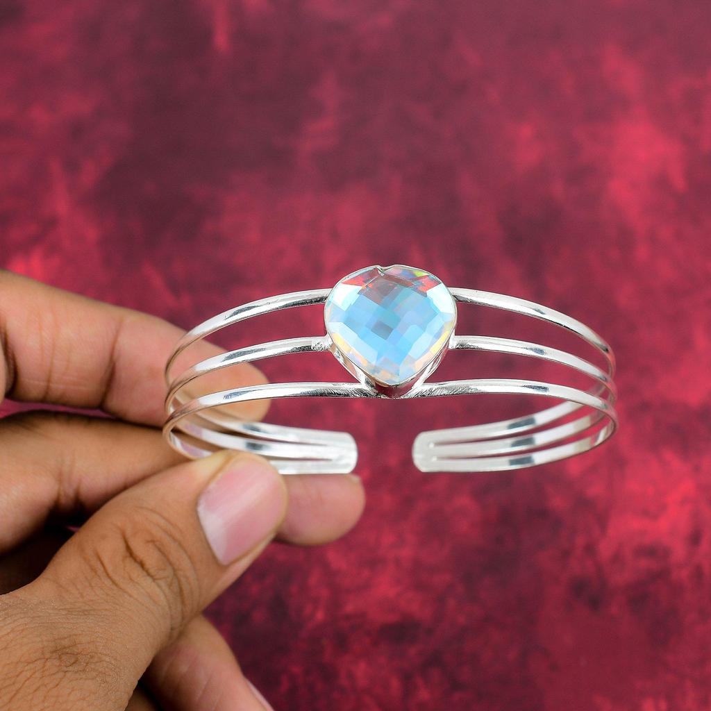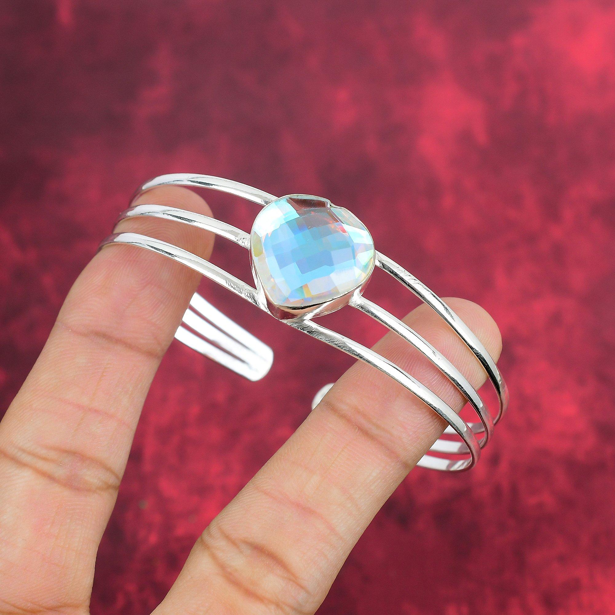 Браслет с мистическим топазом, ювелирные изделия из драгоценных камней, регулируемый браслет из стерлингового серебра 925 пробы, подарок для женщин, браслет ручной работы