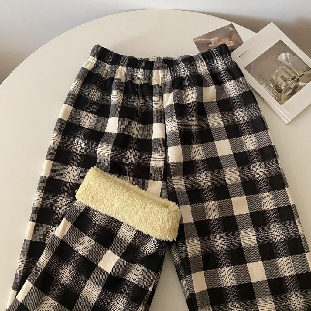 Модные теплые плюшевые брюки из кашемира, плотные, клетчатые, женские, зимние, повседневные, свободные, широкие брюки, корейская уличная одежда для студентов