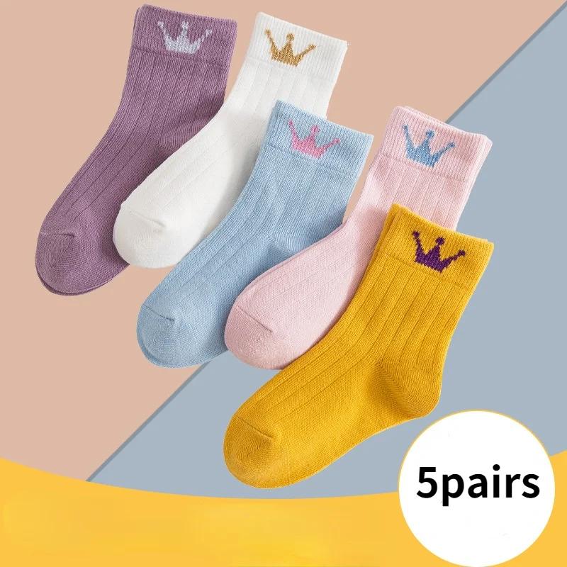 5 пар детских носков на осень и зиму, хлопковые носки с мультяшными милыми рисунками, чистые носки для мальчиков и девочек, детские носки-полочки