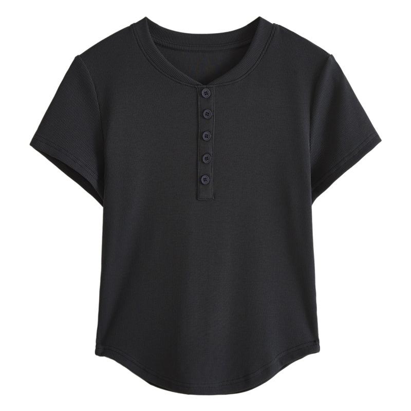 Футболка с короткими рукавами на правом плече для женщин 2024 года, новый летний стиль, маленький облегающий крой, на пуговицах, горячая девушка, короткий универсальный топ